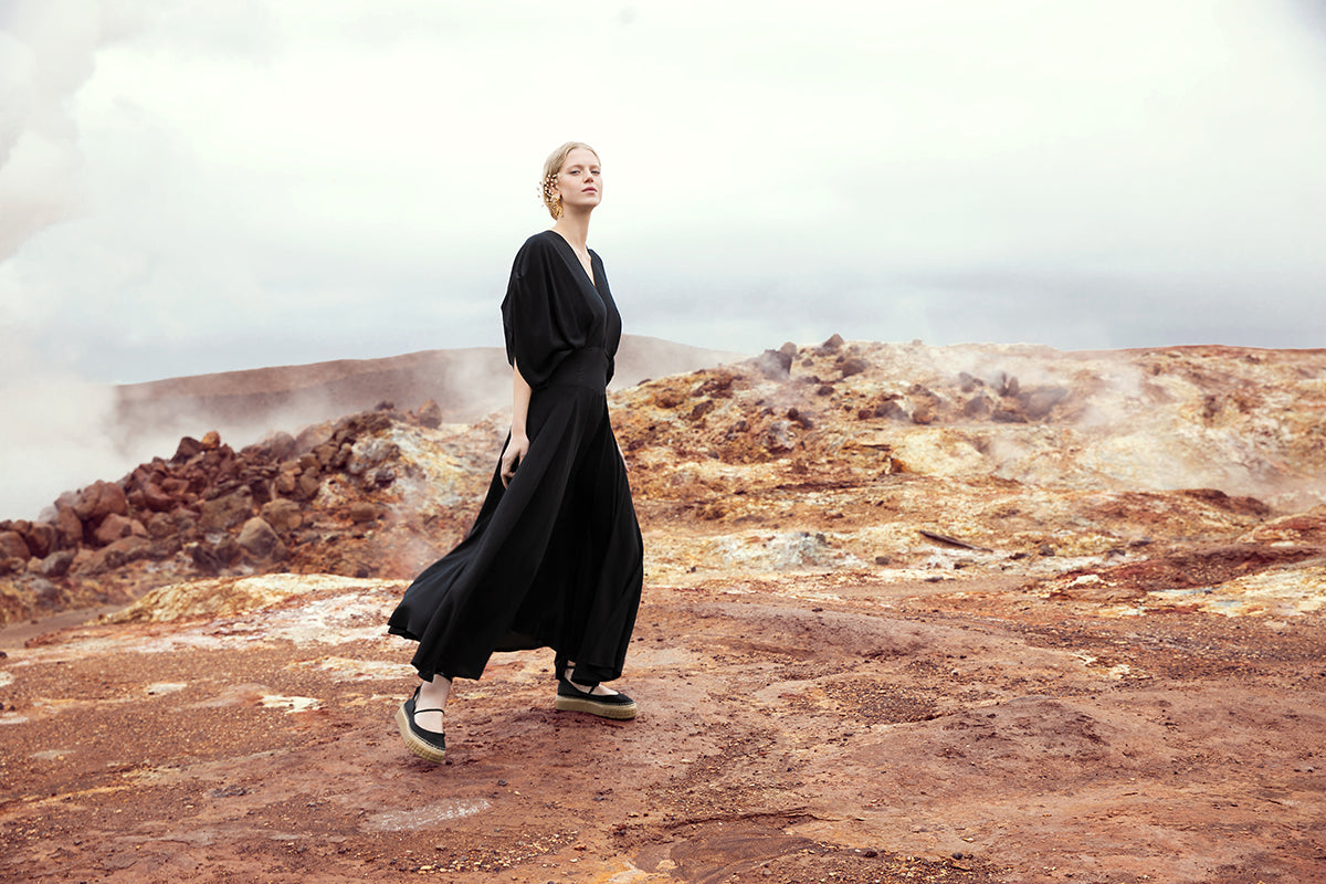 In the spring and summer, these make ideal choices for a polished look. Take your Katla dress to watch an outdoor movie under the stars or wear it in the daytime paired with our organic cotton crop top for an effortless look. In the fall and winter, pair your vegan silk maxi dress with our GOTS certified organic cotton hoodies to stay extra cozy and chic. Take your dress apple picking in the orchards or sit by the fire and read a great novel. This one-and-done style makes getting dressed beautifully and ethically easier than ever before. Our styles cover the full range of sizes and offer a flattering fit for every shape - including petite and plus size.One of the most distinctive elements of our dresses is the luscious vegan fabrics. Our dresses are made of plant based fabrics with silk like softness and texture. They are made from luxurious cupro modal blends and Lenzing Ecovero Viscose fibers, which are derived from sustainable wood and pulp. Our vegan silk styles respect animals and wildlife. They are 100% cruelty-free, compared with traditional silk which is harmful to silkworms